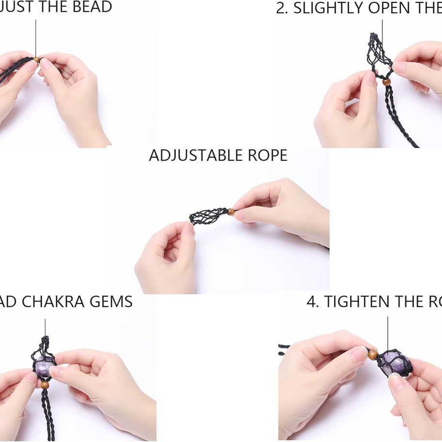 7 Chakra Healing Crystal Necklace Set - Boho Handmade Cord Cage and Hippie Energ