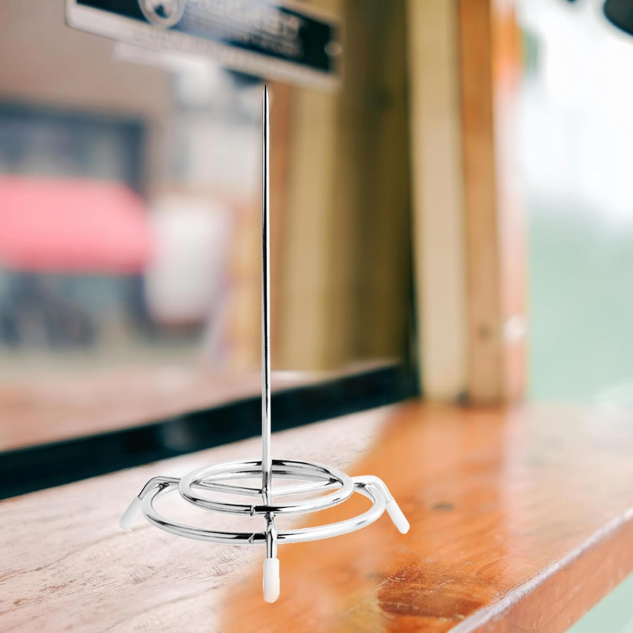 - STAINLESS STEEL NOTE HOLDER: The Receipt Holder spindle is a practical tool for holding notes, invoices or letters in an upright position. Made of high-quality stainless steel with excellent rust and corrosion resistance, the ticket seat is not only durable, but also easy to clean and maintain